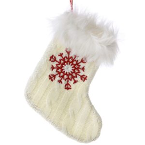 Χριστουγεννιάτικα/Υφασμάτινο Κρεμαστό Μποτάκι 63712 13εκ x 17εκ Λευκό