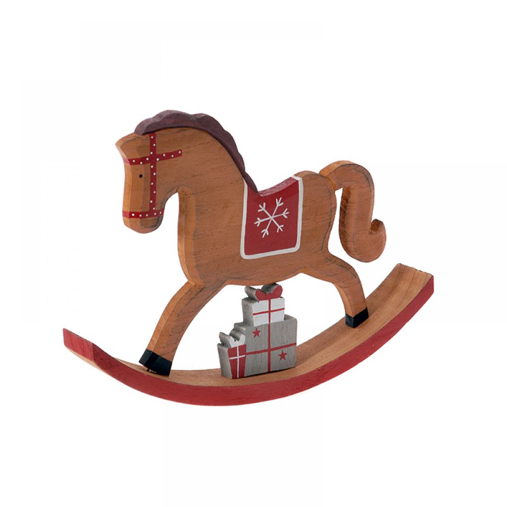 Χριστουγεννιάτικα/Άλογο Κουνιστό 55719 25εκ x 4εκ x 19εκ Κόκκινο, Καφέ